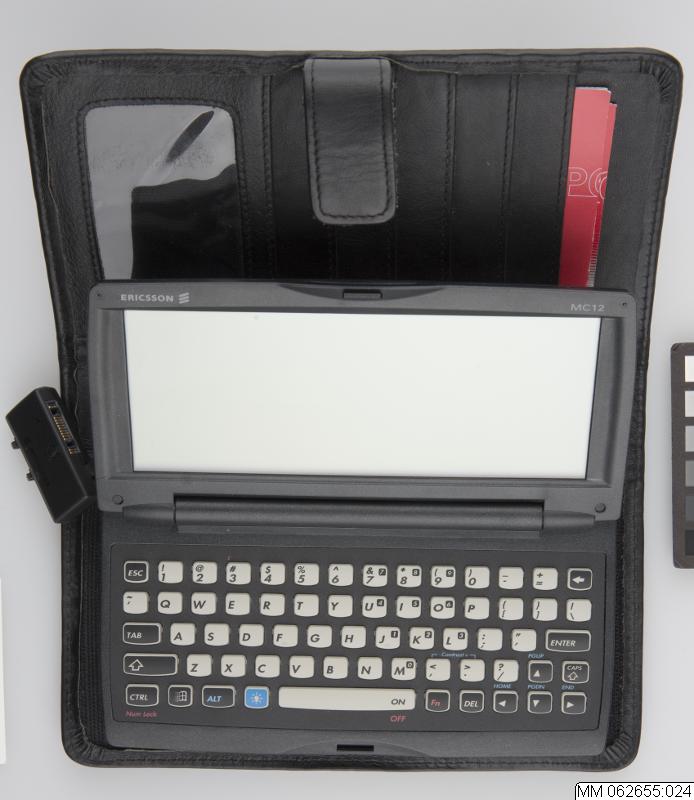 - Handdator med trycksskärm och pekpenna samt QWERTY tangentbord. Monochrome 6,6 tum skärm. Adapterkabel för sammankoppling med telefon. Medföljer läderfodral med kardborrfäste och fack för kredit- och visitkort. Plats för två laddninggsbara NiMh batterier med AA storlek. Ericsson BKB 193115 1100mAh. Made in Japan.