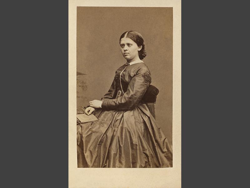 Visitkortsfotografi. Porträtt av Fredrika Elisabeth Ulrika Bring, gift med biskop Gottfrid Billing.