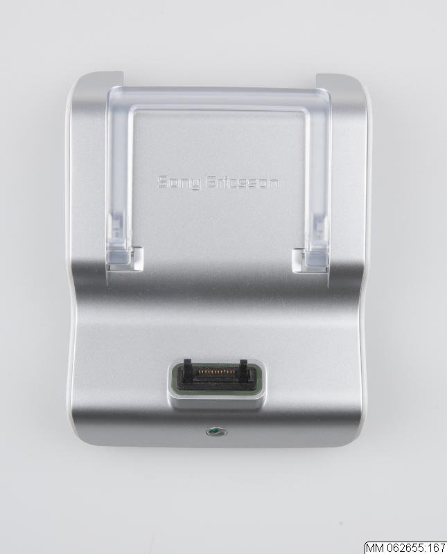 Bordställ för mobiltelefon med tre separata systemkontakter och möjlighet till att ha hörlurar, laddare och USB-kabel anslutna till telefonen samtidigt.