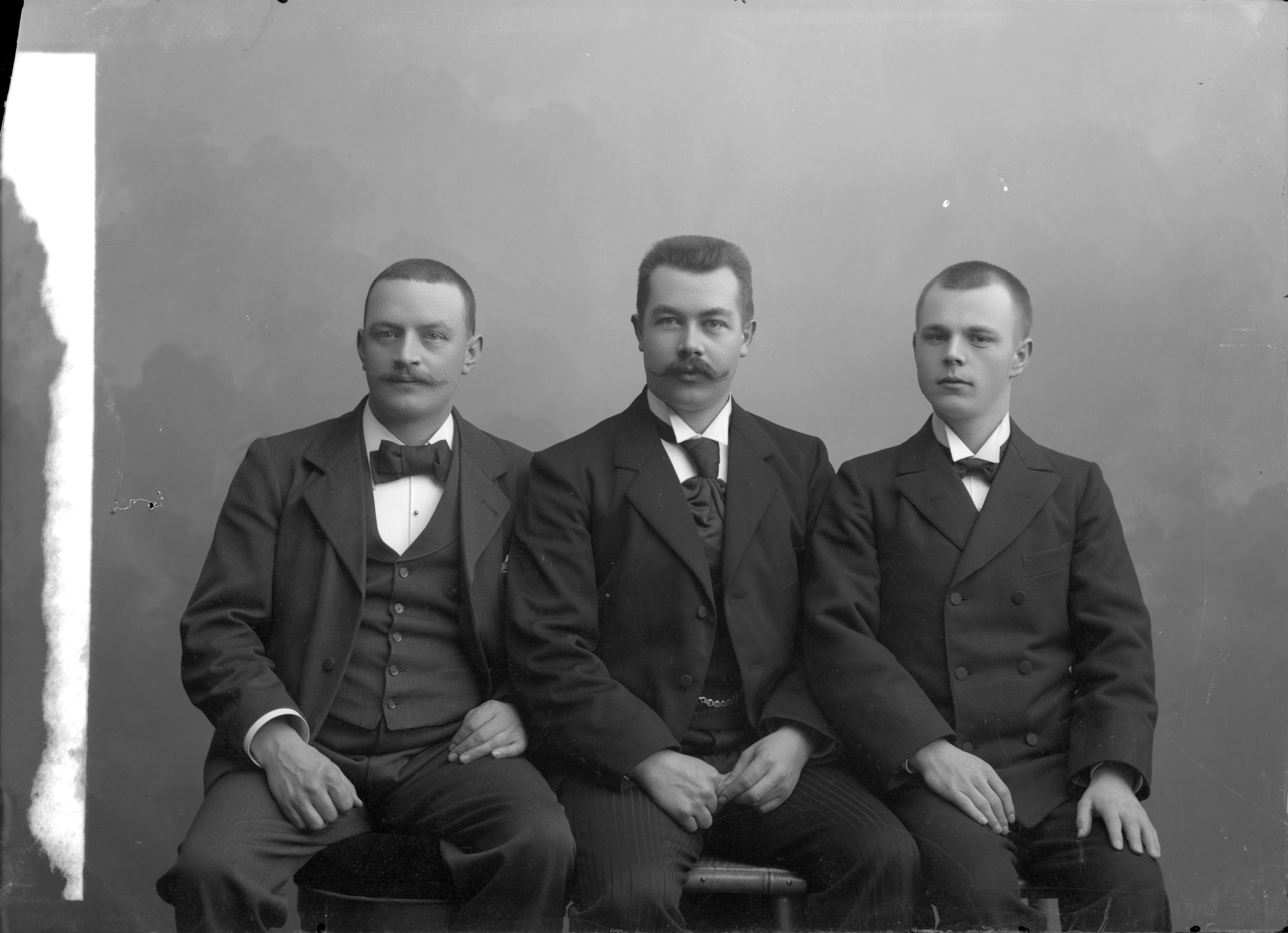 Porträtt i halvfigur av O. Andersson och Å. Åkesson med okänd man.