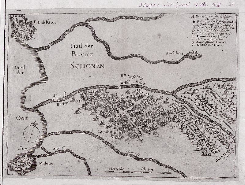 Karta med en översikt av slaget vid Lund, 1676.