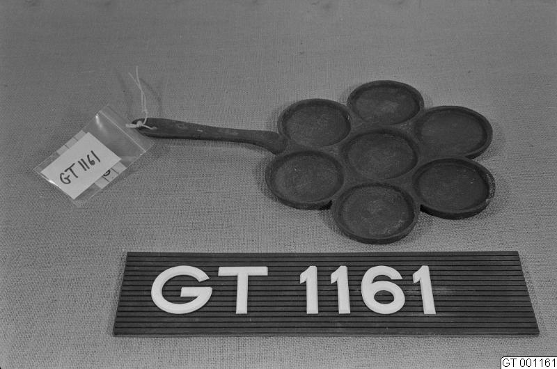 Plättlagg av gjutjärn. För små plättar, sju stycken urgröpningar.