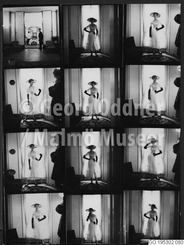 GO 195302:080 :: handskar, hatt, klänning, kvinna