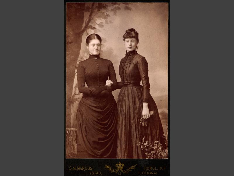 Visitkortsfotografi. Porträtt av lärarinna Eva Bunth tillsammans med en annan kvinna.