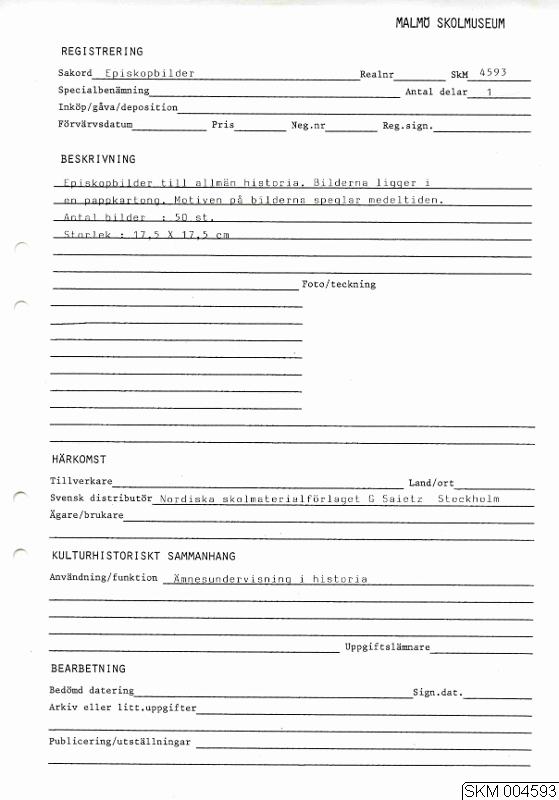 Episkopbilder till allmän historia. Bilderna ligger i en pappkartong. Motiven på bilderna speglar medeltiden. 50 st. bilder.