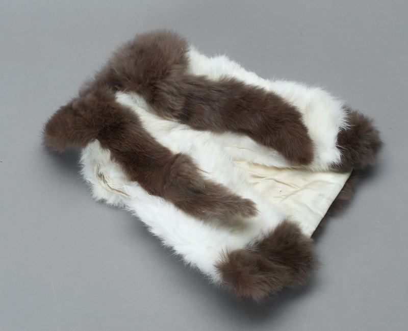 Rak cape av vit päls, rundskuren över hals och axlar, ärmhål utan ärmar.