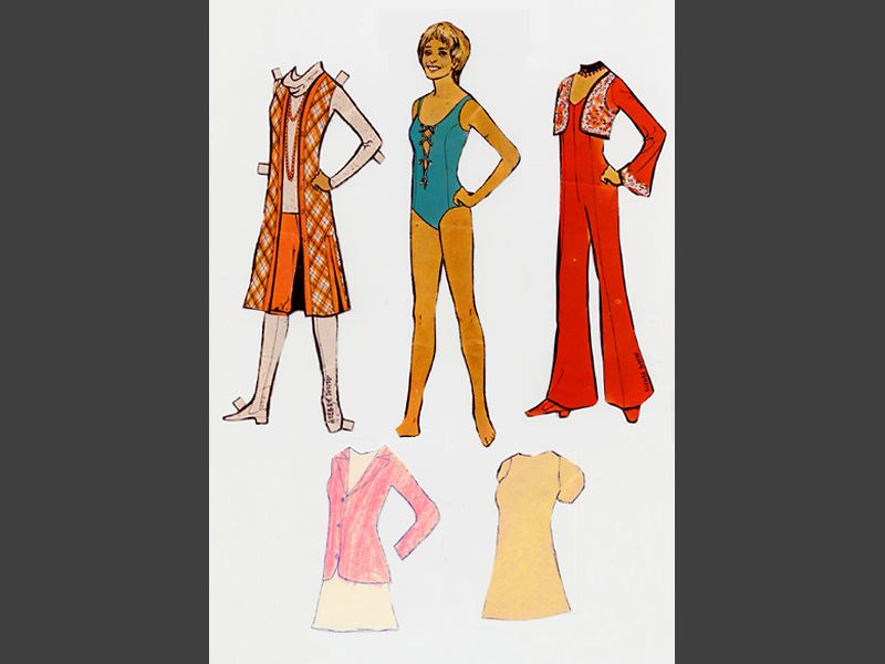 1 styck klippdockan Siw Malmkvist har baddräkt och 10 olika klädesplagg.