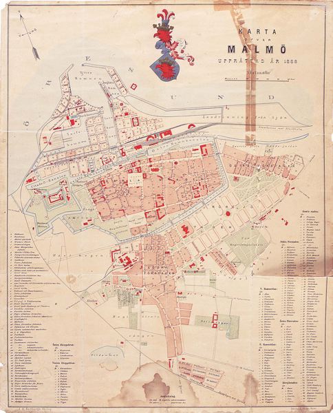 Karta öfver Malmö upprättad år 1888.