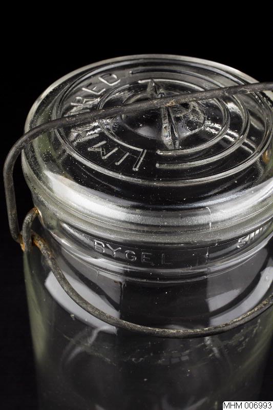 för att hålla fast detta. På halsens sida är inpressat i glasmassa