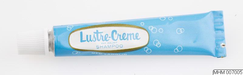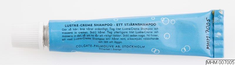 gängad hals. Vit, rund, räfflad skruvkork. Tuben är blå med vita ringar.