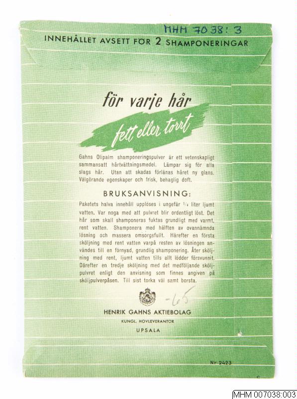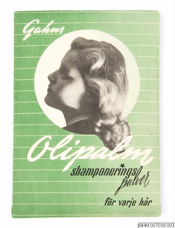 text: "Gahns / Olipalm / shamponeringspulver / för varje hår. På