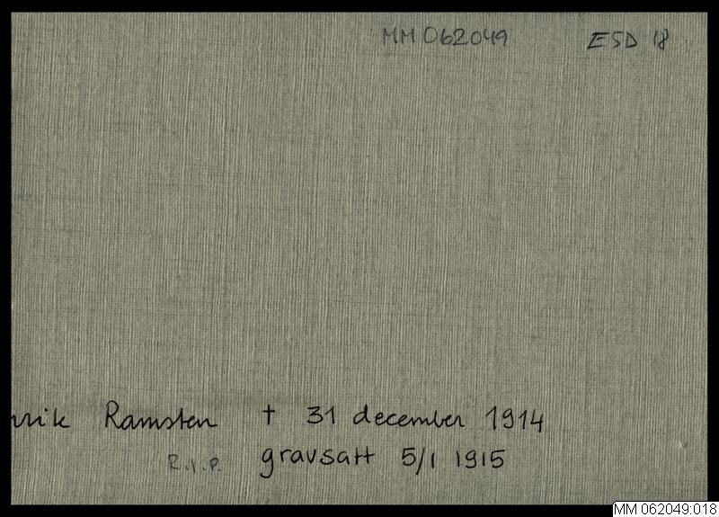 Carl Henrik Ramsten i kista. Gravsatt 5.1.1915.