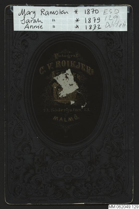 Systrarna Ramsten, från vänster Mary, Sarah och Annie. Fotoateljé, 1882-1883.