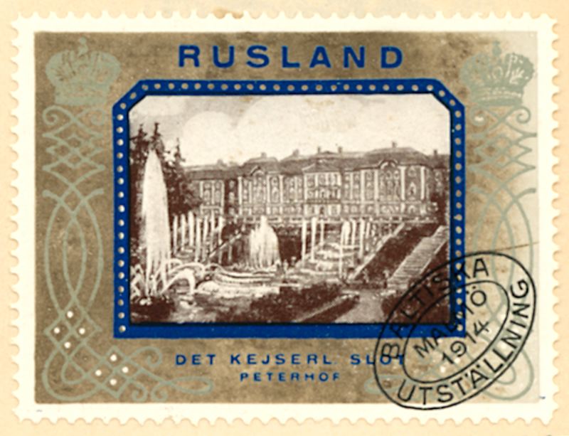Reklammärket för Baltiska Utställningen i Malmö 1914. " Det kejserlige Slot, Peterhof, Sankt Petersborg, Ryssland.