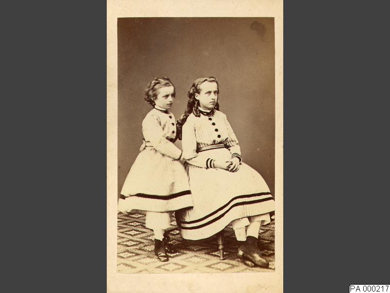 Visitkortsfotografi. Porträtt av systrarna Ida och Eleonora von Schulzenheim som flickor.