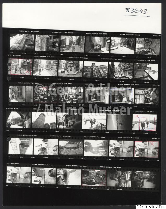 GO 198102:001 :: stadsbebyggelse, moské, affärsbyggnad, affärsgata, man