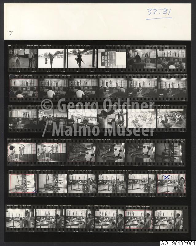 GO 198102:084 :: byggnad, byggnadsinteriör, teatergrupp, man, kvinna, scen, scenutrustning