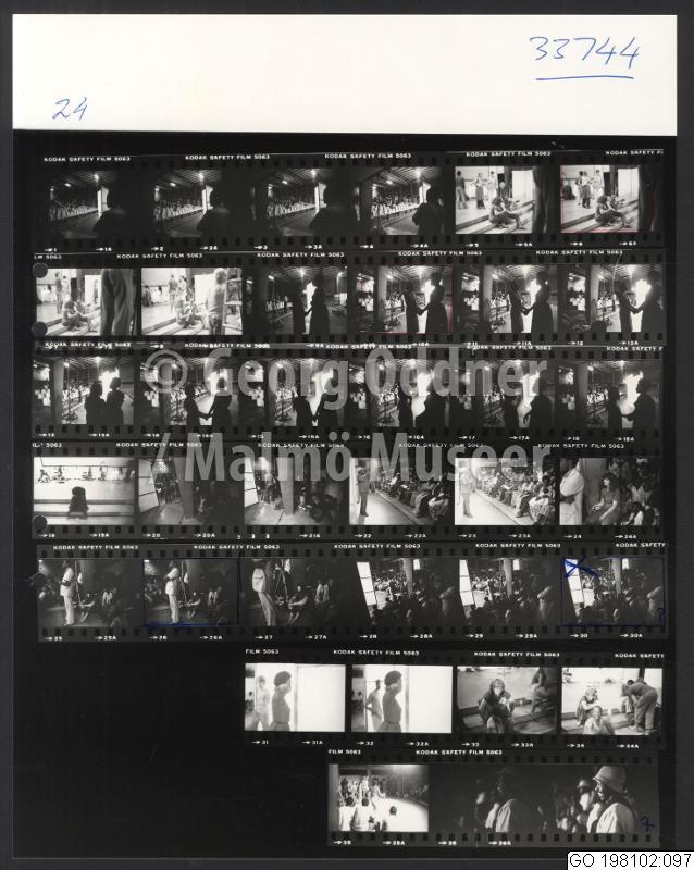 GO 198102:097 :: byggnad, byggnadsinteriör, teatergrupp, scen, scenutrustning, publik, man, kvinna