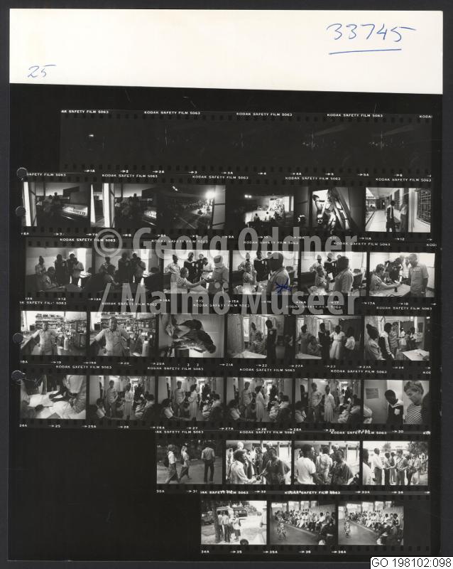GO 198102:098 :: läkare, sjukvårdspersonal, sjukvårdsutrustning, patient, väntrum, teatergrupp, man, kvinna