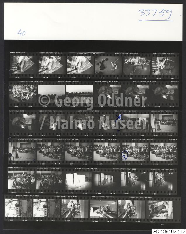 GO 198102:112 :: byggnad, byggnadsinteriör, teatergrupp, scen, scenutrustning, publik, man, kvinna