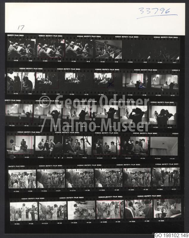 GO 198102:149 :: teatergrupp, filminspelning, filmutrustning, scen, scenutrustning, man, kvinna