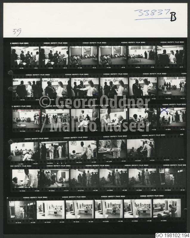 GO 198102:194 :: teatergrupp, serveringspersonal, byggnad, man, kvinna