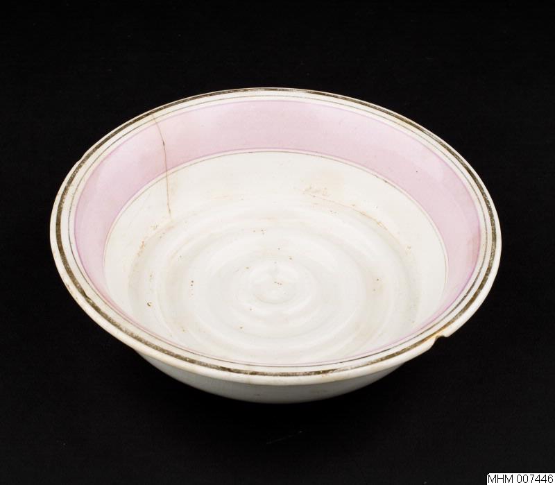 upphöjningar. Rosa bred rand i ovandelen av tvålkoppen. Två guldränder