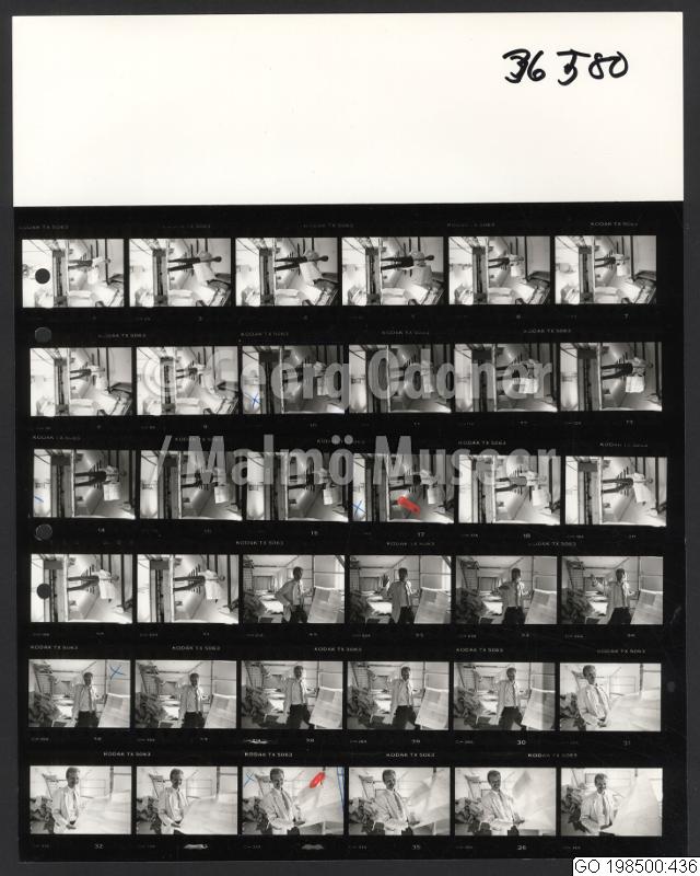 GO 198500:436 :: interiör, man, byggnadsarbete, byggnadsritning