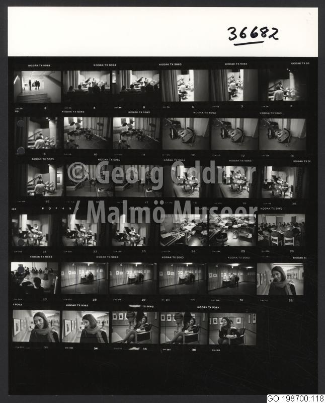 GO 198700:118 :: kontor, kvinna, museum, musiker, musikinstrument, sammanträde, utställning