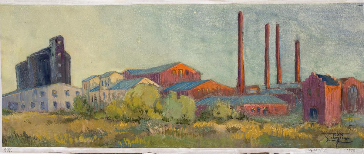 Målning, motiv från Klagshamn, signatur i nedre högra hörnet: Alex Lindman / 1958.
