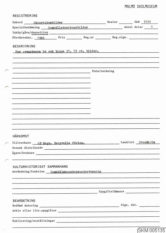 Skioptikonbilder. Hur svenskarna bo och bygga II, 75 st. bilder.