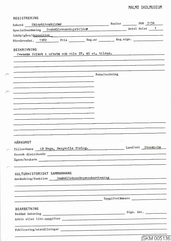 Skioptikonbilder. Svenska folket i arbete och vila IV. 45 bilder.
