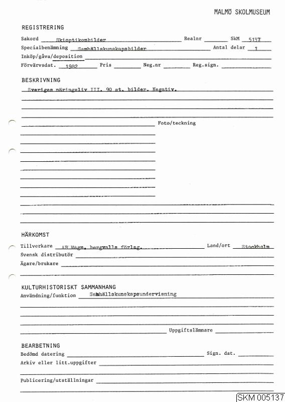 Skioptikonbilder. Sveriges näringsliv III. 90 bilder. negativ.