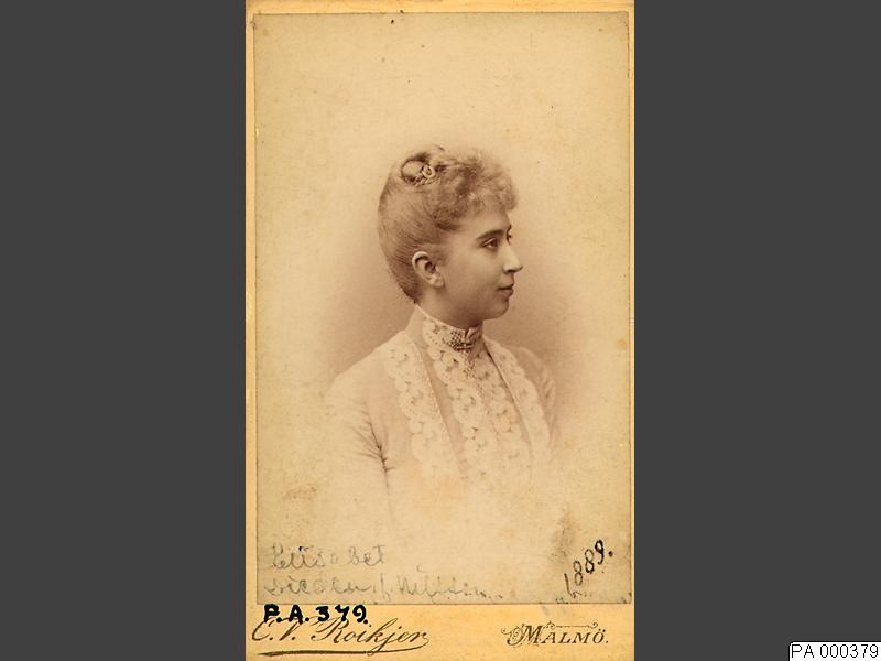 Visitkortsfotografi. Porträtt av Elisabeth Nilsson, gift Dieden.