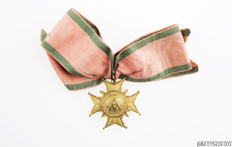 Amarantorden i gulmetall. prägling på framsidan: MEMORIA DULCIS