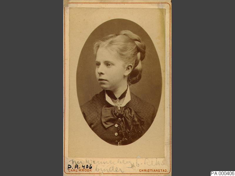 Visitkortsfotografi. Porträtt av Gabriella Rehbinder, gift Gunnarsson Wennerberg, som ung flicka.