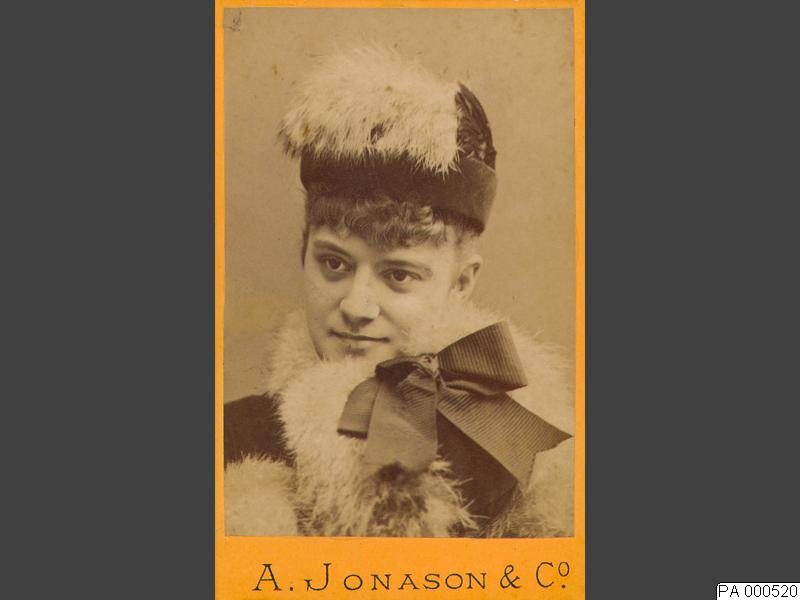 Visitkortsfotografi. Porträtt av skådespelerskan Carolina (Lina) Sandell.