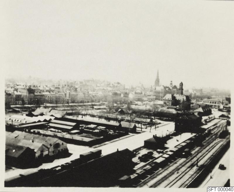 Malmö bangård, felvänd. Bilden är tagen från Stora valskvarnen.