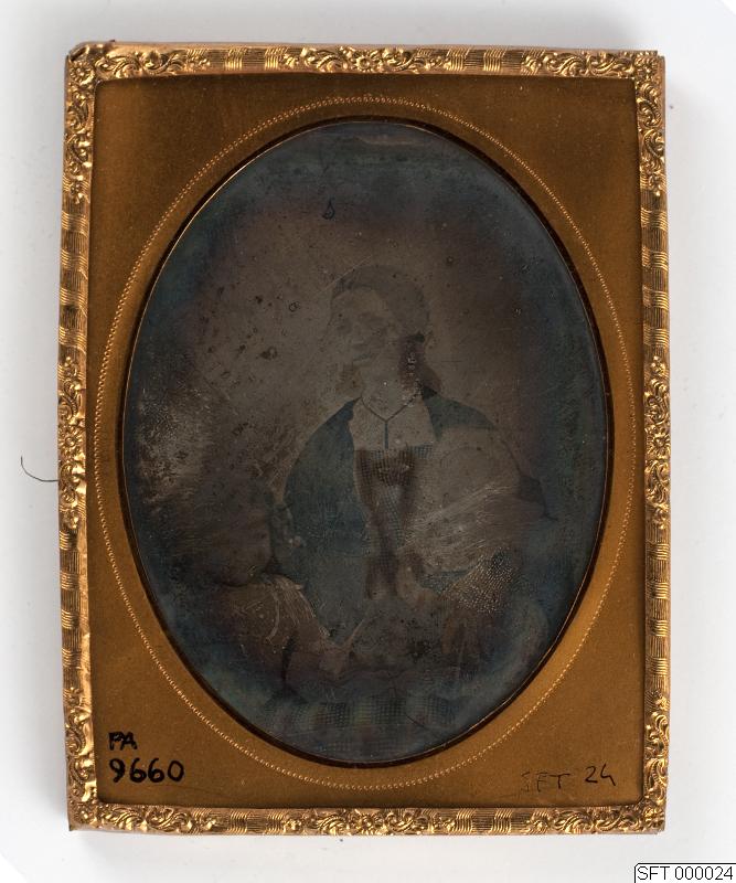 Daguerreotyp. Porträtt, kvinna. Oval.
