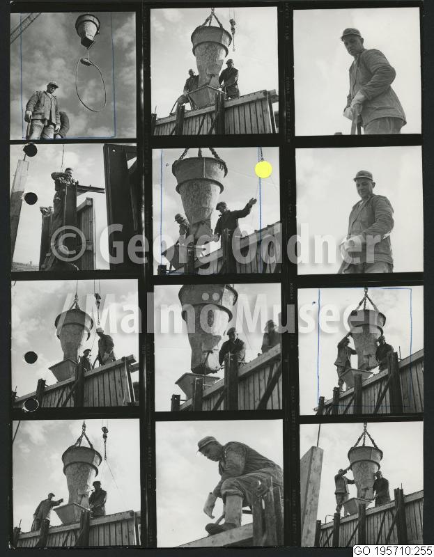GO 195710:255 :: byggarbetsplats, bygge, byggnadsarbetare, byggnadsarbete, cementgjutning, man