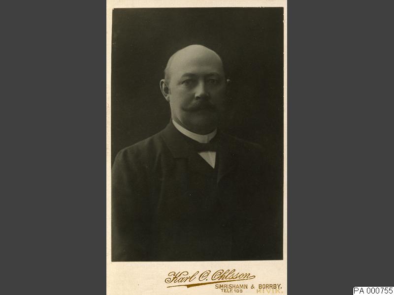 Visitkortsfotografi. Porträtt av garverifabrikör Nils Alfred Ehrnberg i Simrishamn.