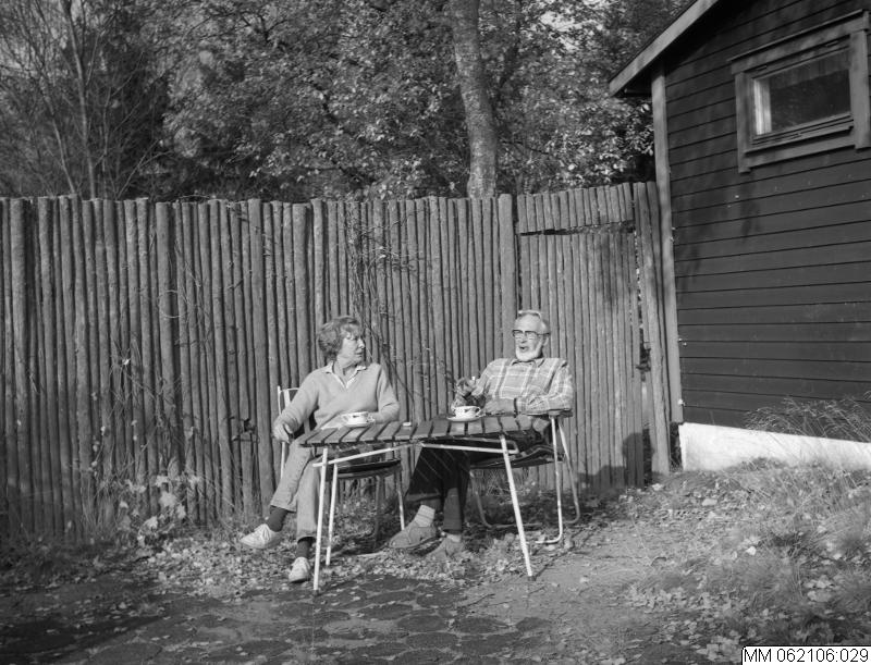 MM 062106:029 :: kvinna, man, fika, sommarstuga, stuga, trädgård