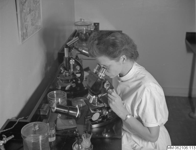 Laboratorium - kvinna tittar i mikroskop