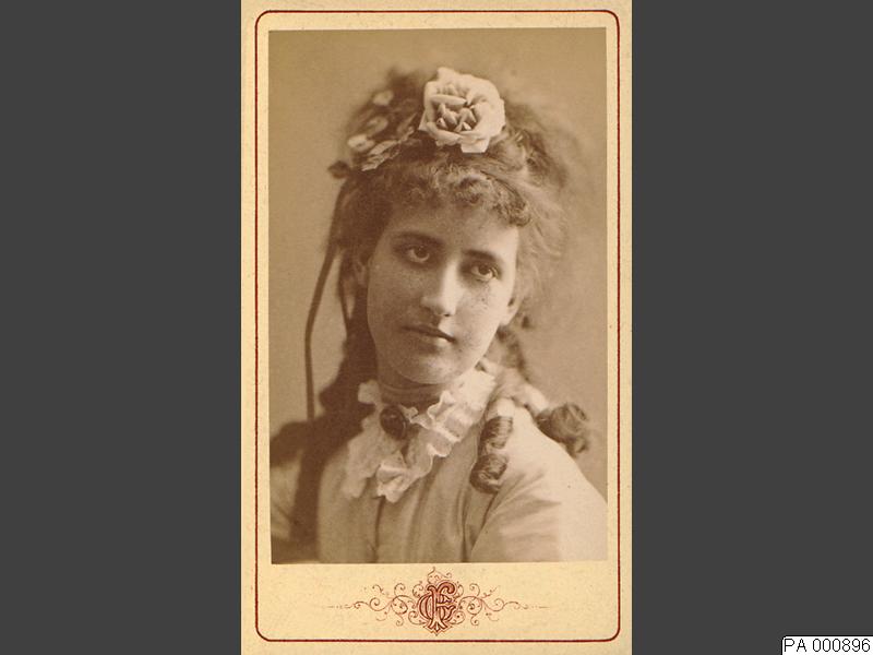 Visitkortsfotografi. Porträtt av skådespelerskan Anna Sofia Rustan.