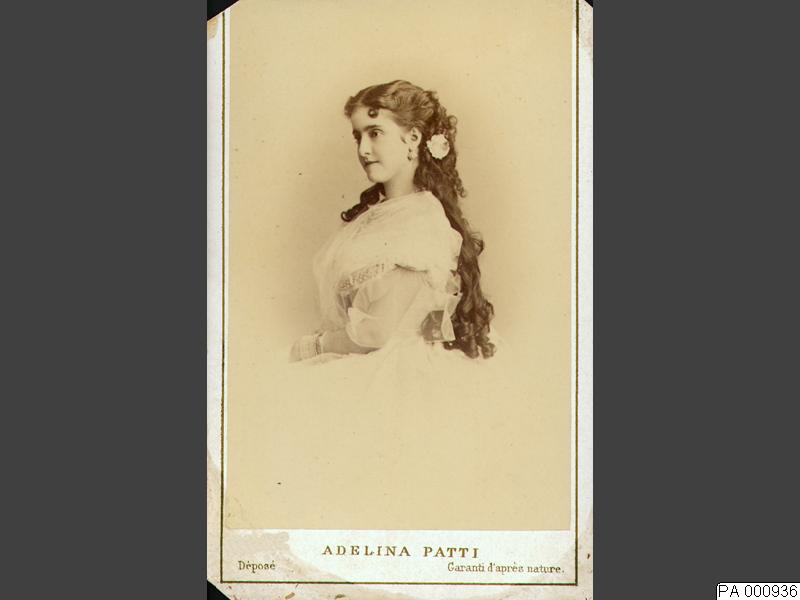 Visitkortsfotografi. Porträtt av den spansk-amerikanska operasångerskan Adelina Patti, gift Cederström (i 3:e giftet).