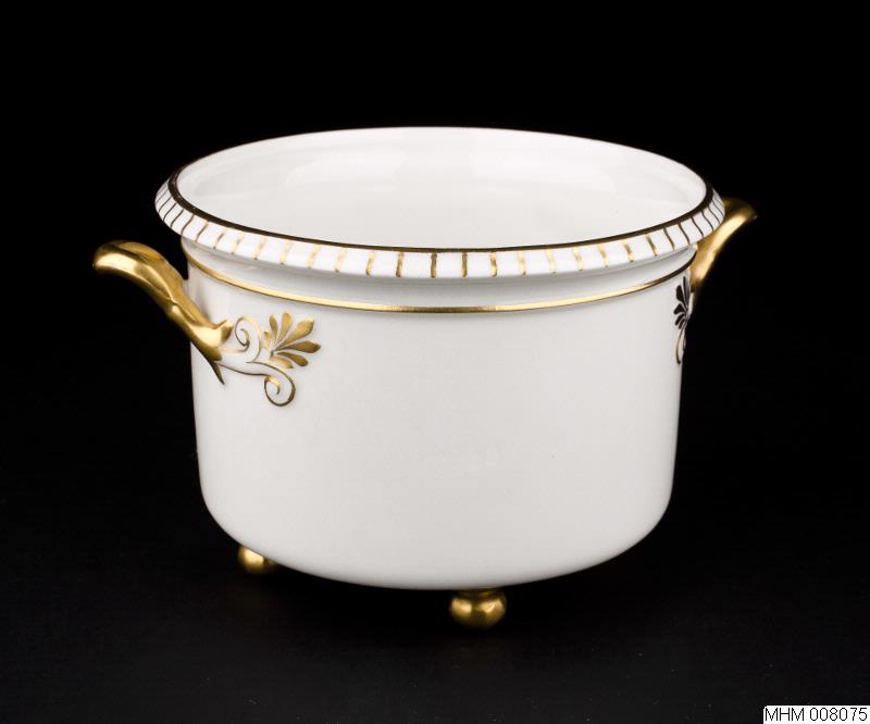 Ytterkruka av vitt porslin med gulddekor från Rörstrand tillverkad på