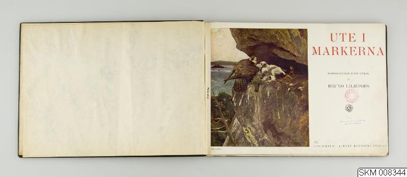 Bok med titeln "Ute i markerna". Reproduktioner efter tavlor av Bruno Liljefors. 33 planscher samlade i en bok med förord av Bruno Liljefors.