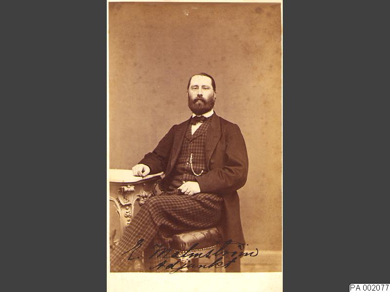 Visitkortsfotografi. Porträtt av läroverksadjunkt Elof Gustaf Malmström.
