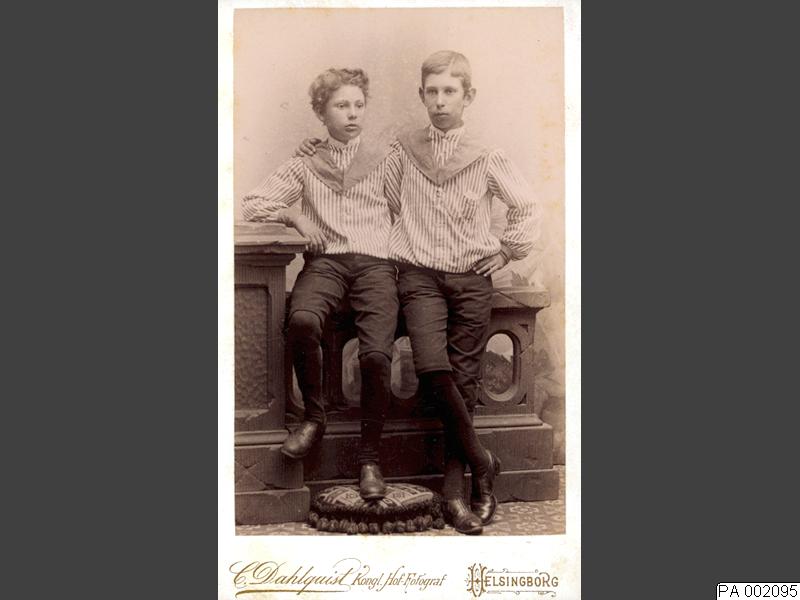 Visitkortsfotografi. Porträtt av bröderna Gottfrid och Tore Hofström.