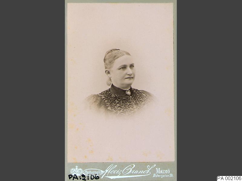 Visitkortsfotografi. Porträtt av fru Anna Maria Bernhardina Nyström, gift Lycell.